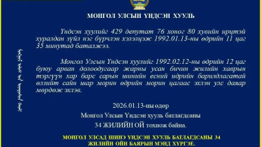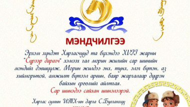 Шинэ Үндсэн хууль батлагдсаны 34 жилийн ойд зориулан зохион байгуулсан сумын ИТХ-ын нэрэмжит “ВОЛЕЙБОЛ”-ийн шилжин явах цомын тэмцээн 2026 оны 01 дүгээр сарын 16, 17-ны өдрүүдэд амжилттай болж өндөрлөлөө.