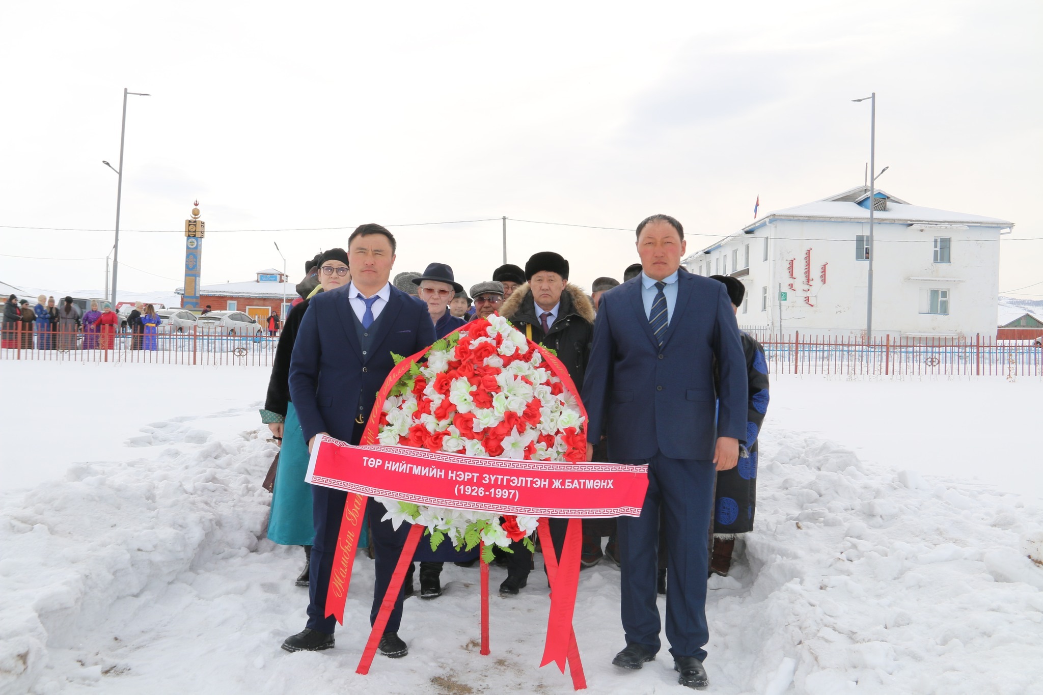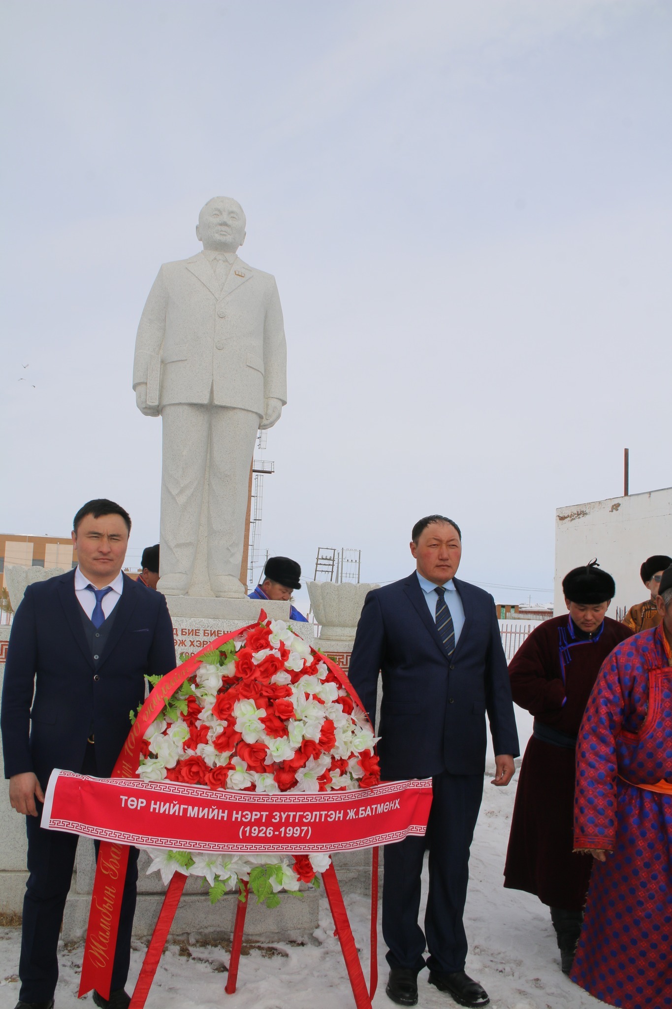 Мөн Хяргас суманд байрлах эрхэм хүмүүний гэрэлт хөшөөнд цэцэг өргөж, хүндэтгэл үзүүлэх ёслолын ажиллагаа зохион байгуулагдлаа. Ёслолын арга хэмжээнд Увс аймгийн Засаг дарга Э.Насанбат, Ж.Батмөнх агсны ач хүү, Батмөнх сангийн тэргүүн Даш, сумын удирдлагууд болон иргэдийн төлөөлөл өргөнөөр оролцож, нэрт төрийн зүтгэлтний гэгээн дурсгалыг хүндэтгэн дурсав.